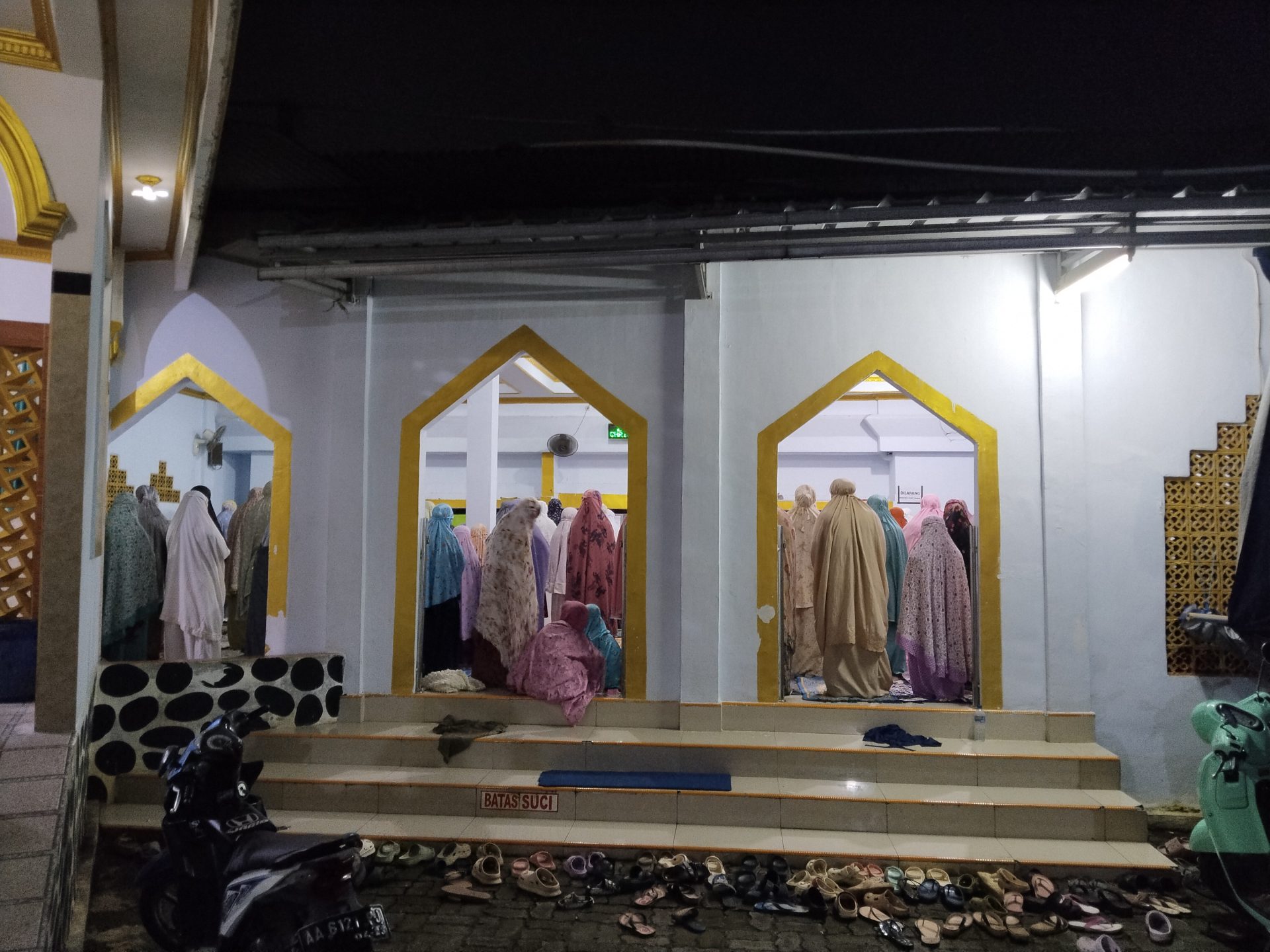 Jamaah, baik laki-laki maupun perempuan, memadati masjid untuk menunaikan ibadah tarawih malam pertama. Kehadiran warga yang cukup banyak menunjukkan tingginya semangat masyarakat dalam menyambut bulan suci Ramadan tahun ini.