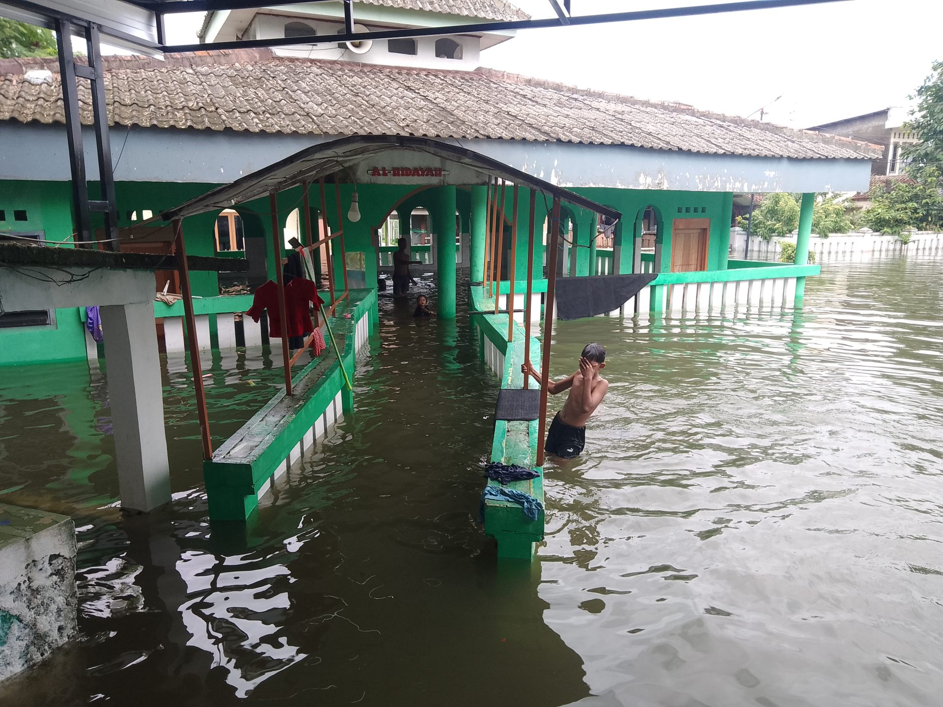 Sebagian pengungsi dipusatkan di Masjid Nurul Iman, yang kini menjadi tempat berlindung bagi warga yang rumahnya masih terendam air.