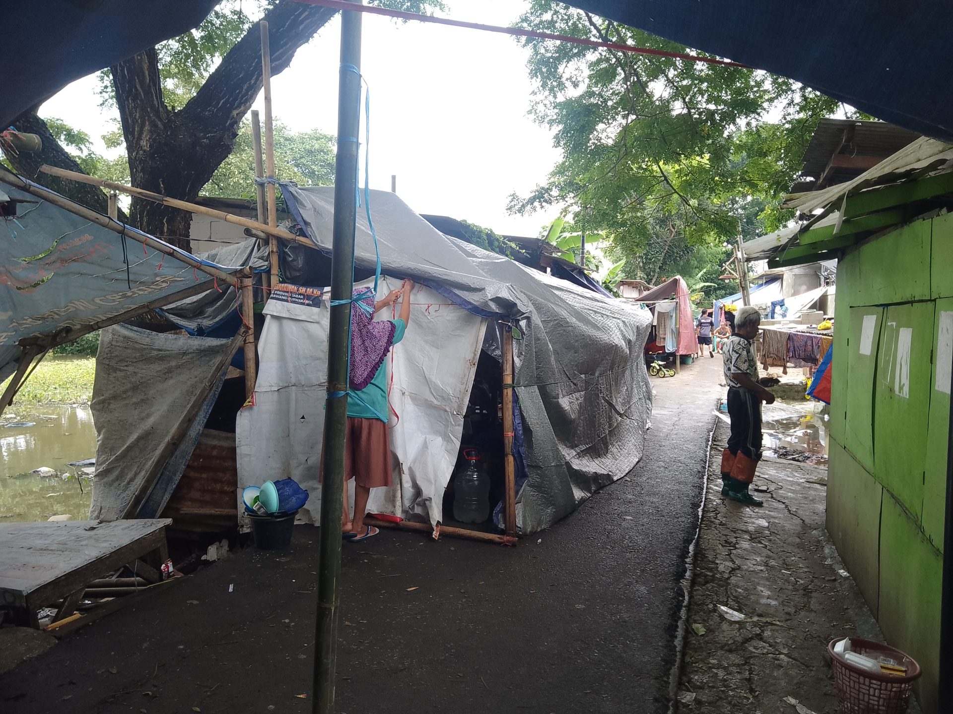 Memasuki hari ke-14, ratusan warga terdampak masih bertahan di pengungsian dan tenda-tenda darurat yang didirikan di sepanjang tanggul wilayah RW 03 dan RW 04.