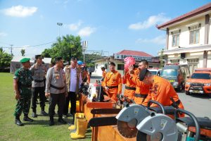 INSKA NEWS, Klaten — Menyongsong datangnya musim hujan dengan intensitas tinggi, Polres Klaten menggelar Apel Pasukan dan Peralatan Kesiapsiagaan Penanganan Bencana Alam di halaman depan