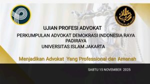 INSKA NEWS,Jakarta – Ketua Umum Organisasi Advokat (OA) PADIRAYA, Dr. Mohamad Ali Syaifudin, S.H., M.H., menyampaikan arahan resmi usai pelaksanaan Ujian Profesi Advokat (UPA) PADIRAYA–Universitas