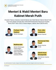 INSKANEWS,Jakarta – Presiden Prabowo Subianto melakukan reshuffle Kabinet Merah Putih. Ada enam kementerian yang pejabatnya dilakukan perubahan oleh Prabowo. Menteri Sekretariat Negara Prasetyo Hadi membeberkan
