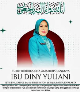 INSKA NEWS-PURWAKARTA – Kabar duka menyelimuti Kabupaten Purwakarta. Ibu Diny Yuliani, istri dari Bupati Purwakarta, Saepul Bahri Binzen, telah berpulang pada hari Selasa, 28 Oktober