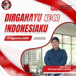 INSKANEWS,Jakarta – Pemimpin Redaksi (Pemred) INSKA NEWS Maman Suparman menyampaikan ucapan selamat atas peringatan Hari Ulang Tahun Kemerdekaan Republik Indonesia ke-80, yang jatuh pada Minggu,