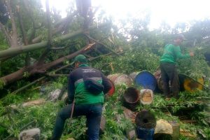 INSKANEWS, Jakarta Timur — Sebanyak tiga pohon kapuk tumbang di bantaran Kali Cakung, RT 05/03, Kelurahan Cakung Barat, Kecamatan Cakung, Jakarta Timur, pada Minggu (8/2)