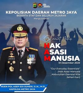 INSKA NEWS,Jakarta – Kepolisian Daerah Metro Jaya beserta seluruh staf dan jajaran menyampaikan ucapan selamat memperingati Hari Hak Asasi Manusia (HAM) Sedunia, yang diperingati setiap