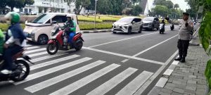 inskanews co. Jakarta Pusat – Guna memastikan kelancaran aktivitas masyarakat di jam sibuk pagi hari, personel Unit Patroli Motor (Patmor) Polsek Metro Menteng Aipda Mulyanto