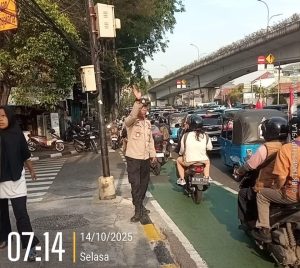 inskanews co Jakarta Pusat – Dalam rangka menciptakan arus lalu lintas yang aman dan tertib pada jam sibuk pagi, Kapolsubsektor Tanah Tinggi Aiptu Antonius Andi