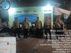 inskanews Jakarta Pusat – Dalam rangka menjaga stabilitas keamanan dan ketertiban masyarakat (kamtibmas) pada dini hari, Polsek Johar Baru melaksanakan Patroli Cipta Kondisi untuk mengantisipasi