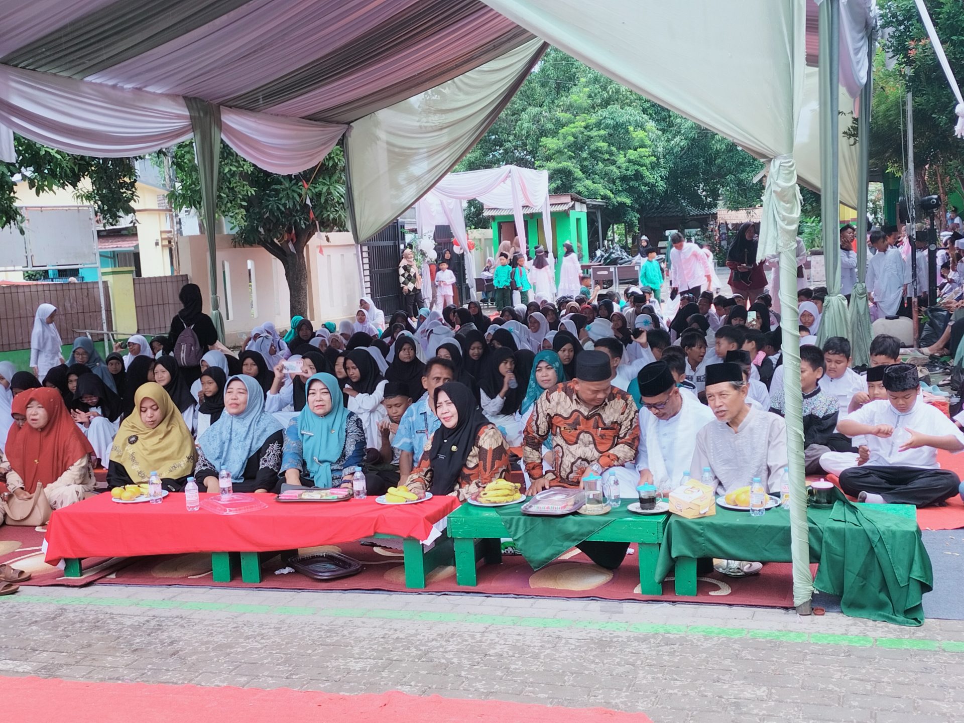 Dengan nada optimis dan penuh kehangatan, Hj. Pupung bahkan melontarkan candaan ringan mengenai potensi pengembangan Mushola, “Kalau perlu, sulap jadi masjid! Hehehe, saya percaya dengan kemampuan Pak Haji Sangkep, Kepala Sekolah ini.”