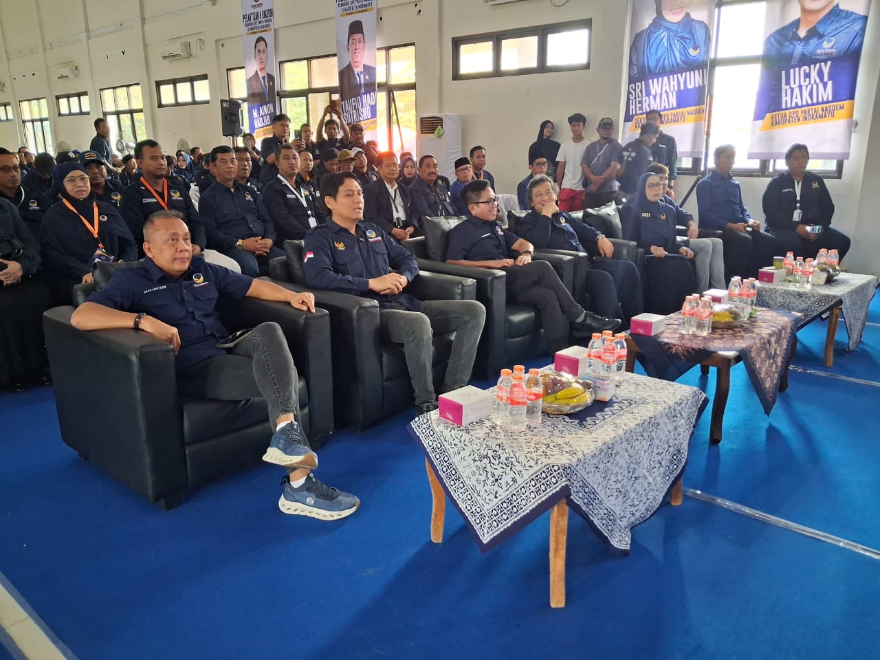Kurang dari seribu kader Partai NasDem dari 31 kecamatan di Kabupaten Indramayu memadati lokasi acara untuk mengikuti prosesi pelantikan yang dipimpin langsung oleh Lucky Hakim selaku Ketua DPD NasDem Indramayu.