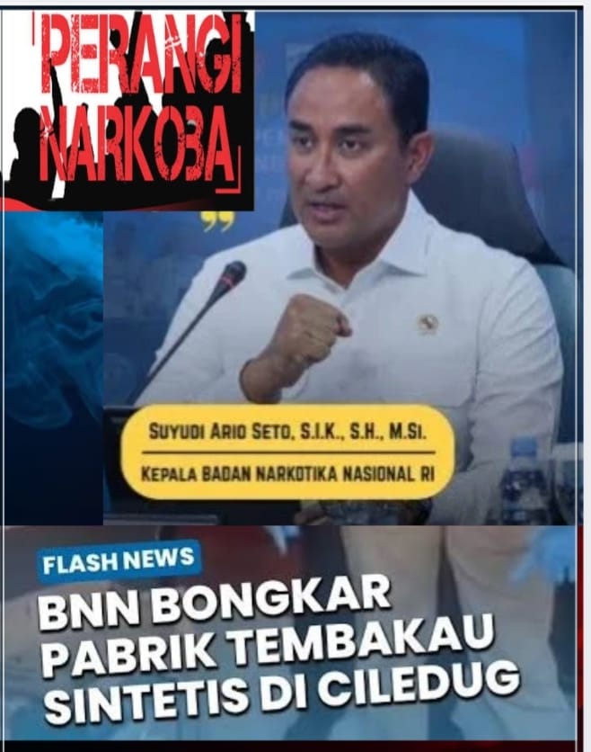 INSKA NEWS, Tanggerang, 13 Januari 2026 – Badan Narkotika Nasional (BNN) RI di bawah komando Kepala BNN RI, Komjen Pol Suyudi Ario Seto telah berhasil membongkar pabrik narkotika jenis Tembakau Sintetis, di Tangerang, dan berhasil menangkap tiga pelaku, dan menyita barang bukti signifikan.Sebagai informasi, Badan Narkotika Nasional (BNN) RI berhasil mengungkap modus baru dengan cara menyamarkan narkotika dalam cairan vape dan kemasan sachet minuman energi, Keberhasilan ini merupakan bukti bahwa BNN berhasil untuk selamatkan ribuan jiwa dari bahaya peredaran narkotika.