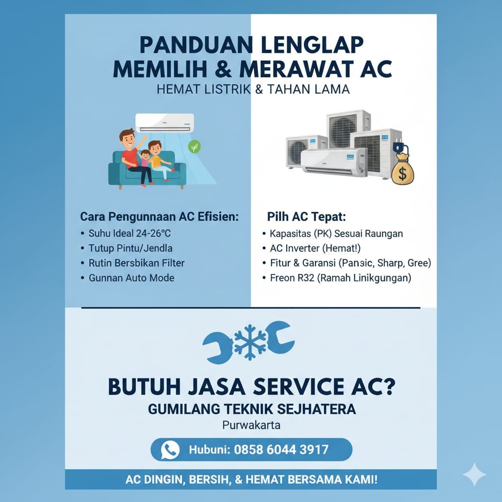 Dengan penggunaan bijak dan perawatan rutin, AC dapat bekerja lebih hemat energi, tahan lama, serta menjaga kenyamanan keluarga