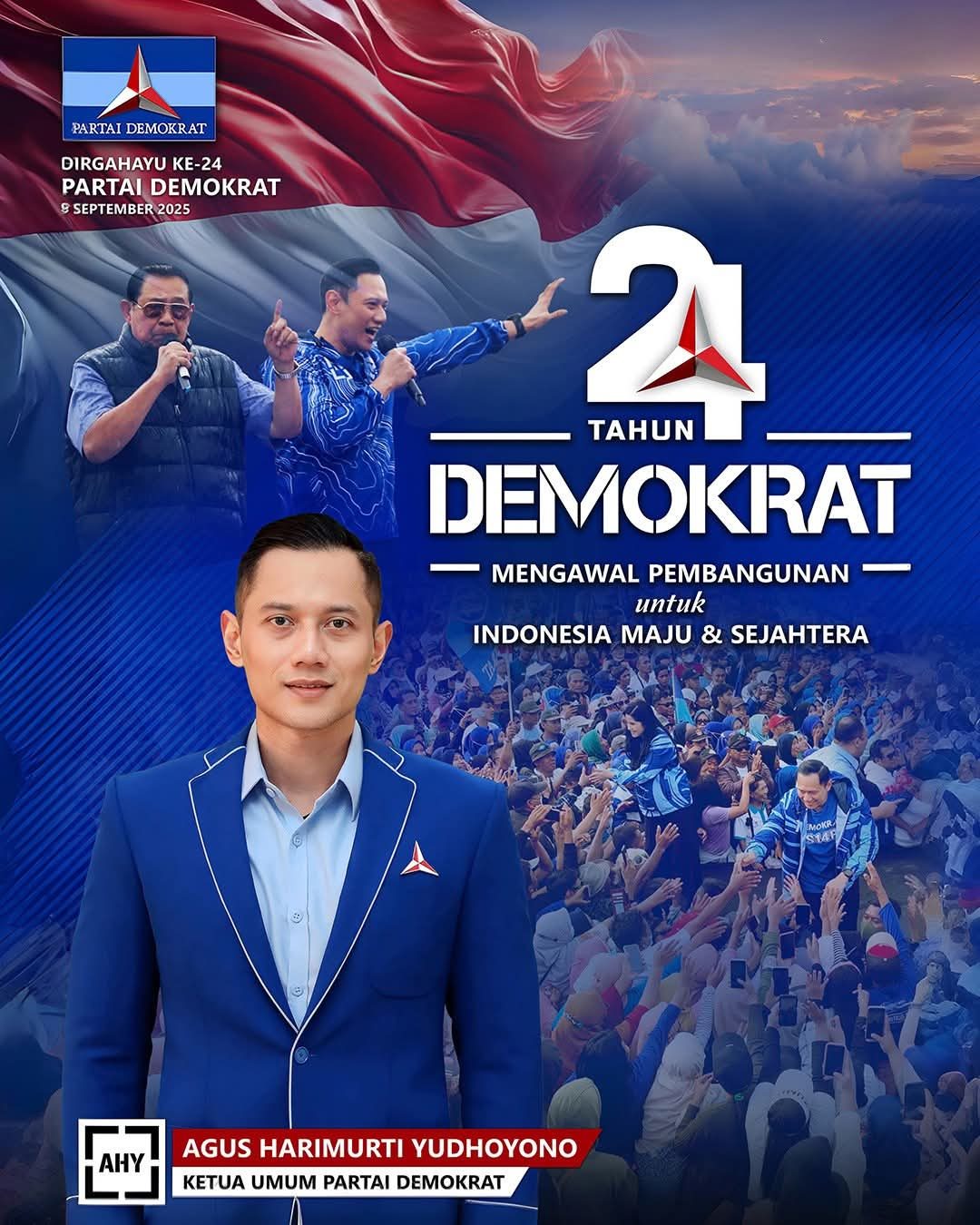 INSKA NEWS,Jakarta, 9 September 2025 – Partai Demokrat memperingati Hari Ulang Tahun (HUT) ke-24 yang diikuti oleh para pendiri, pengurus, kader, simpatisan, serta pemilih Demokrat di seluruh Indonesia.