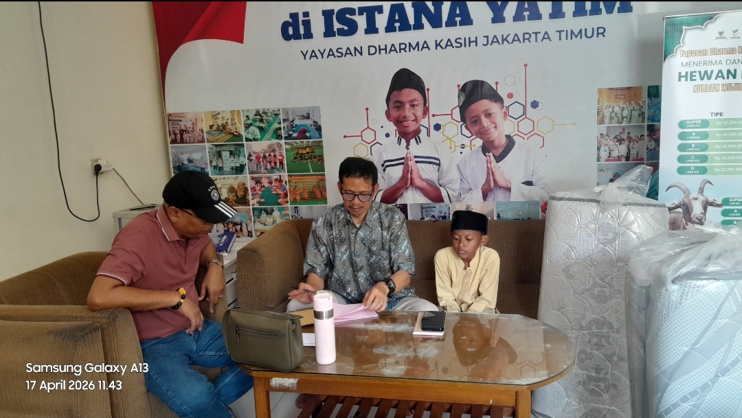 INSKA NEWS, Jakarta—–Muhammad Haris, seorang pedagang asal Medan, Sumatera Utara, menyalurkan bantuan sosial kepada anak-anak yatim di Istana Yatim Yayasan Dharma Kasih Jakarta Timur. Jumat, 17 April 2026 di YDKJT, Jalan Tambun Rengas, Cakung Timur, Cakung.