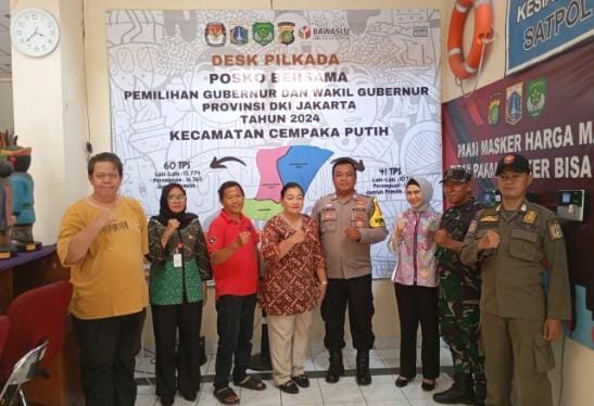 INSKA NEWS, Jakarta – Anggota Polsek Cempaka Putih Bripka Suroto bersama dengan anggota Koramil Campaka Putih dan Satol PP melakasanakan pengamanan gudang logistik pilkada DKI Jakarta di Aula Kecamatan Cempaka Putih Jalan Rawa Kerbo Cempaka Putih Jakarta Pusat. Kamis (24/10/2024)