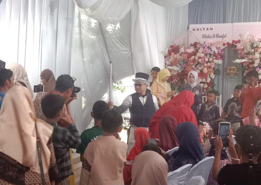 Pada hari Jumat 20 Desember 2024, acara khitanan Dika dan Naufal putra dari bapak Yudi berlangsung meriah .Tamu undangan yang hadir terkejut ketika seorang pesulap muncul di panggung dan memulai pertunjukannya.