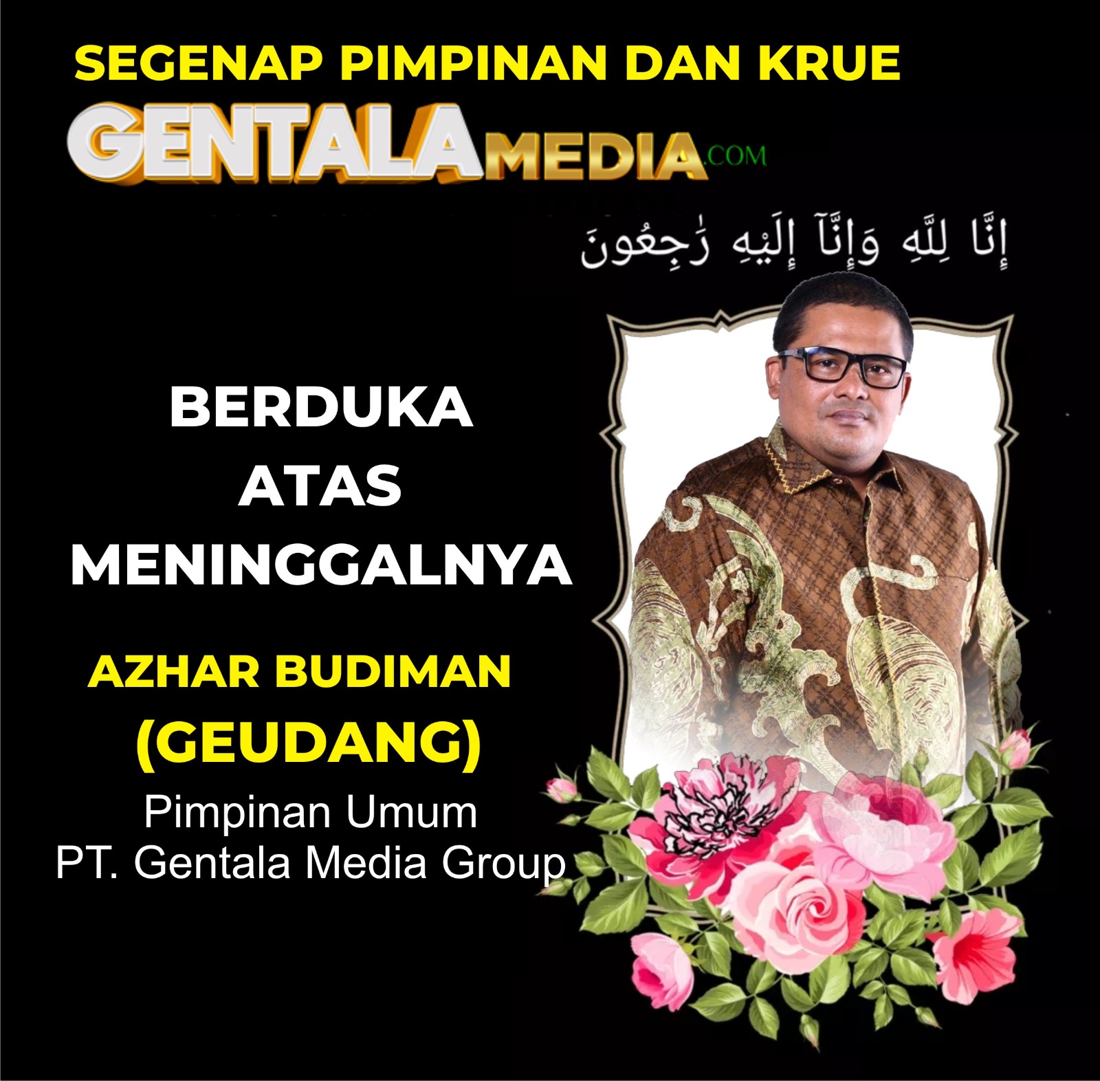 INSKA NEWS,Jakarta — Kabar duka menyelimuti insan pers Tanah Air. Pimpinan Redaksi Gentala, Azhar Budiman, dikabarkan meninggal dunia saat menjalankan tugas jurnalistik di Aceh,Selasa 06 Januari 2026.