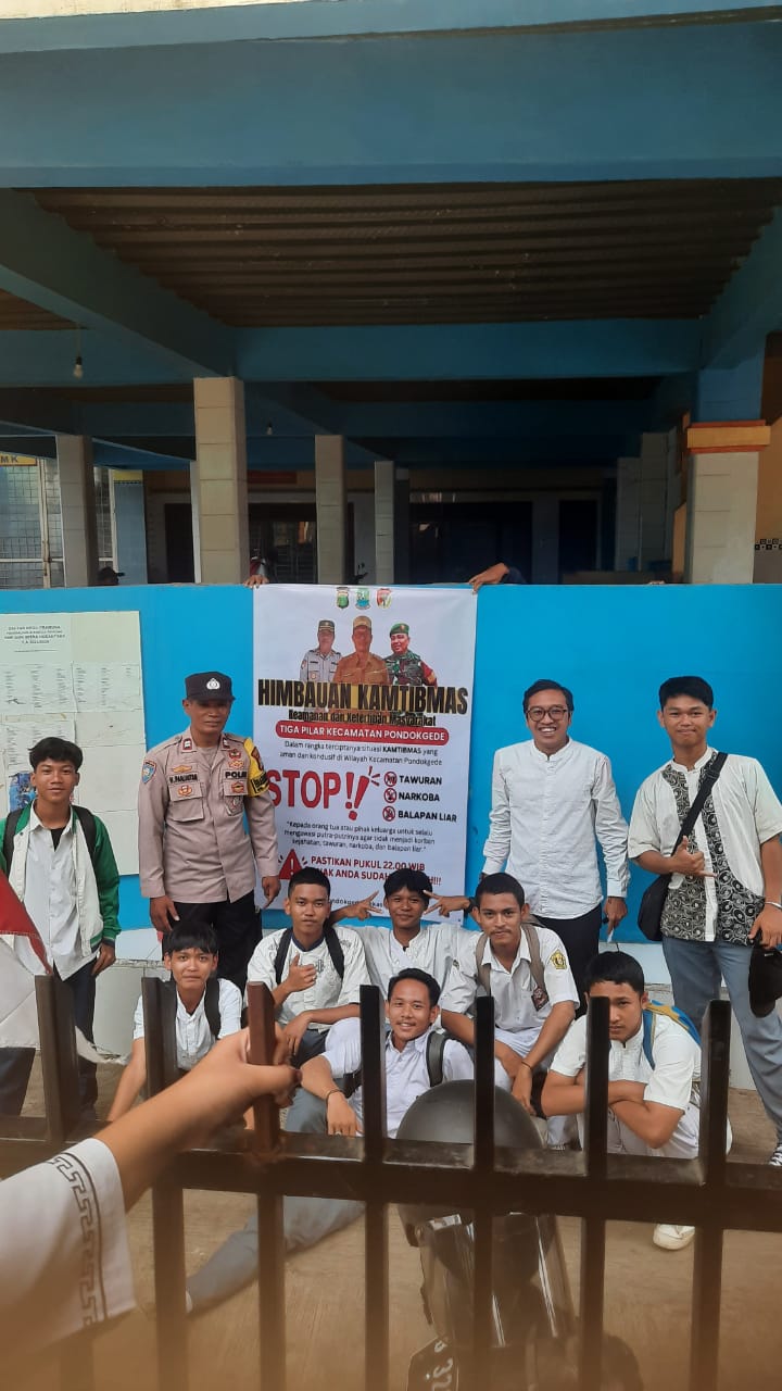 Bhabinkamtibmas Aiptu Heddy Panjaitan bersana Babinsa Serda J. Sinaga melaksankan pemasangan spanduk 3 Pilar Kecamatan. Pondok Gede dengan himbaun *“Stop Tawuran, Narkoba dan Balap Liar”* disekitar sekolah dan lokasi-lokasi yang sering di lewati oleh para pelajar atau kalangan remaja, Pemasangan spanduk tersebut bertujuan untuk memberikan pesan tegas kepada para pelajar agar menjauhi perilaku tawuran yang bisa berdampak buruk bagi masa depan para pelajar, adapun lokasi pemasangan spanduk himbauan stop tawuran sebagai berikut :