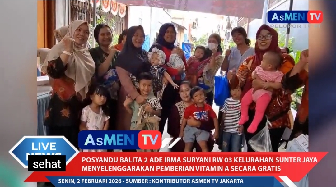 INSKA NEWS, Jakarta —- Posyandu Balita 2 AD Irma Suryani RW 03, Kelurahan Sunter Jaya, Jakarta Utara, menggelar kegiatan pemberian tablet vitamin A secara gratis bagi balita, pada Februari ini. Kegiatan tersebut merupakan bagian dari program rutin pelayanan kesehatan anak yang dilaksanakan dua kali dalam setahun.