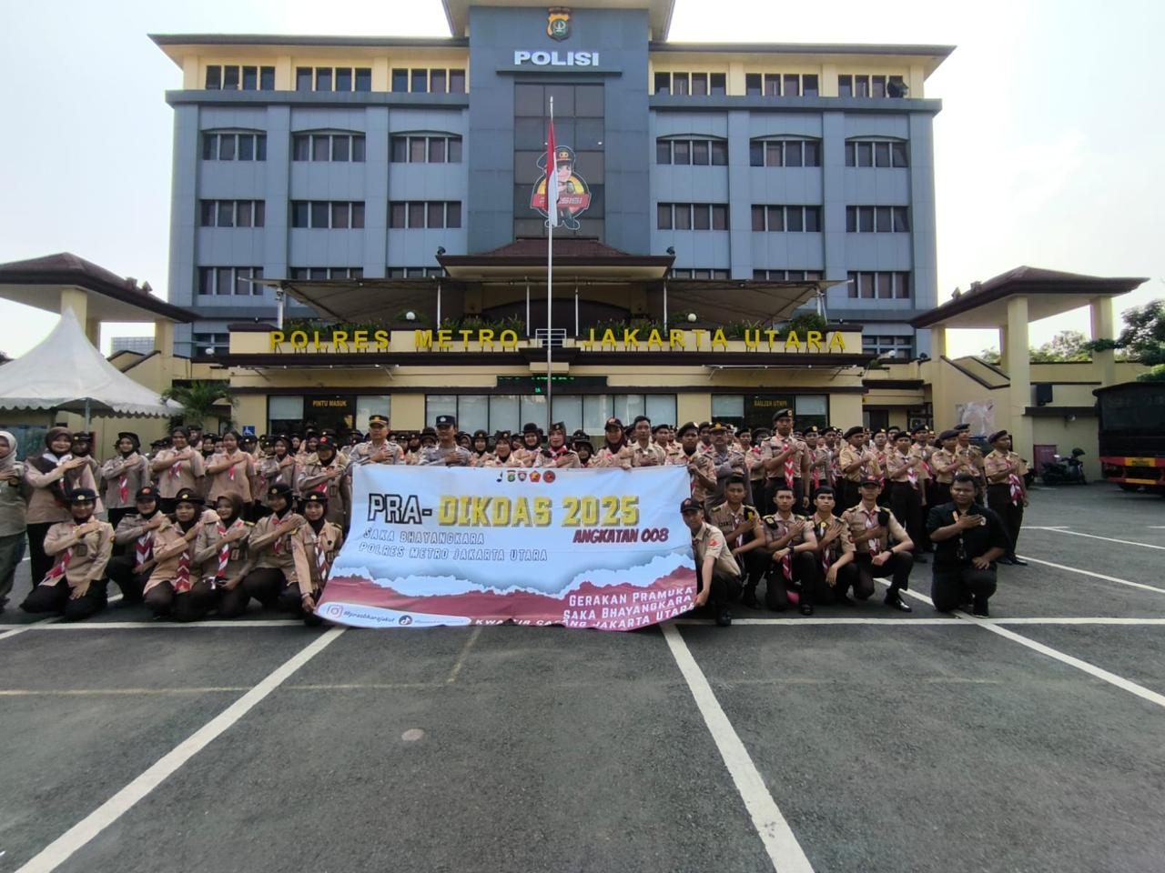 INSKA NEWS, Jakarta Utara, Satuan Pembinaan Masyarakat (Sat Binmas) Polres Metro Jakarta Utara menggelar kegiatan Pra-Pendidikan Dasar (Pra-Dikdas) Saka Bhayangkara Angkatan 008 Tahun 2025 di halaman Polres Metro Jakarta Utara, Minggu (12/10/2025).