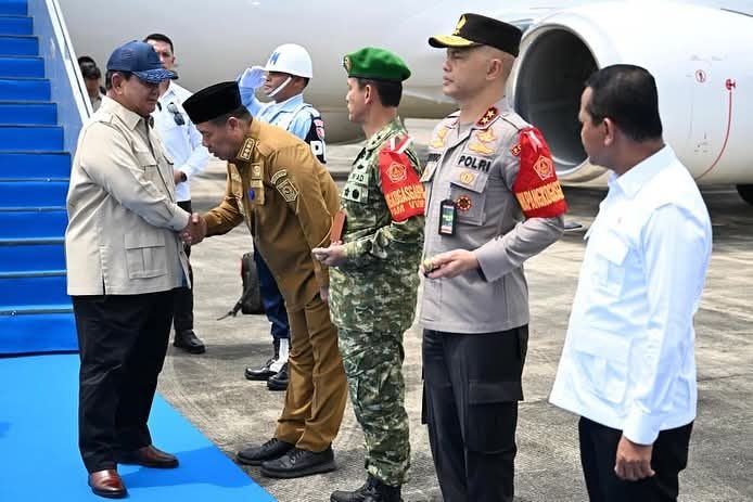 INSKANEWS,Jakarta – Presiden Republik Indonesia, Prabowo Subianto, mendarat di Bandar Udara Depati Amir yang terletak di Kabupaten Bangka Tengah, Provinsi Kepulauan Bangka Belitung, pada Senin, (6 /10/2025)