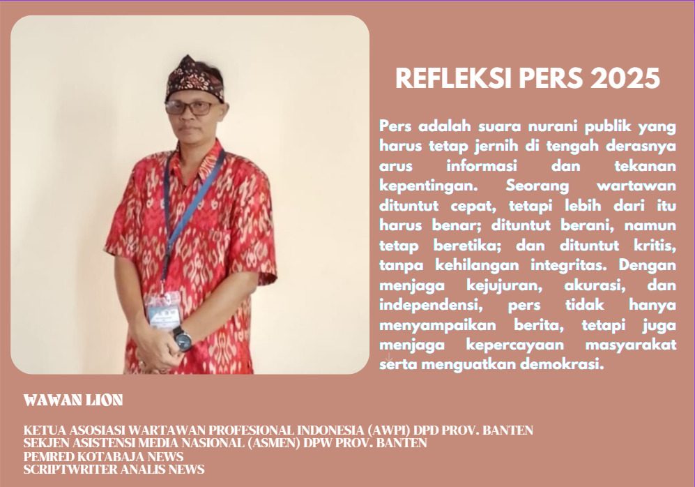 INSKA NEWS, Serang Banten – Asosiasi Wartawan Profesional Indonesia (AWPI) Dewan Pimpinan Daerah (DPD) Provinsi Banten menyampaikan refleksi akhir tahun 2025 sebagai bentuk evaluasi organisasi dan peneguhan komitmen dalam menjaga profesionalisme, integritas, dan independensi pers daerah. Dalam pernyataan yang diterima, Ketua AWPI DPD Provinsi Banten, Iim Setiawan, menyatakan bahwa tahun 2025 menjadi momentum penting untuk memperkuat konsolidasi organisasi dan meningkatkan kualitas wartawan daerah.