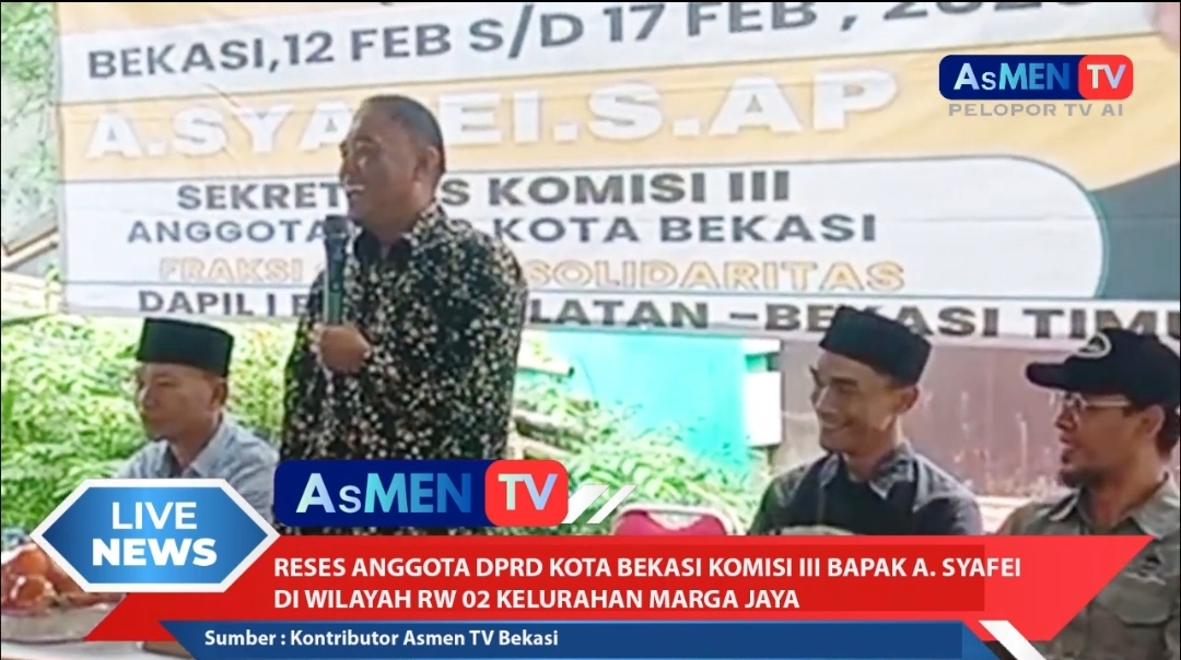INSKA NEWS, Bekasi —– Kegiatan reses I anggota A. Syafei, Sekretaris Komisi III dari Fraksi Golkar Solidaritas Daerah Pemilihan I, digelar di wilayah RW 02 Kelurahan Margajaya, Sabtu, 14 Februari 2026. Agenda ini menjadi ruang serap aspirasi warga secara langsung terkait kebutuhan pembangunan lingkungan dan pelayanan publik.