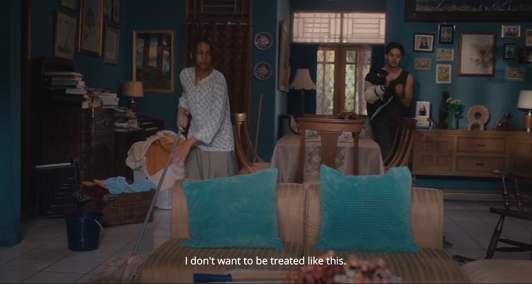 Dalam cuplikan tersebut tergambar tekanan emosional yang dialami sang istri akibat beban yang terus menumpuk. Kondisi ini semakin kompleks ketika perannya dalam keluarga tidak hanya sebatas pasangan, tetapi juga sebagai pengurus utama rumah tangga yang dituntut untuk selalu kuat menghadapi situasi.