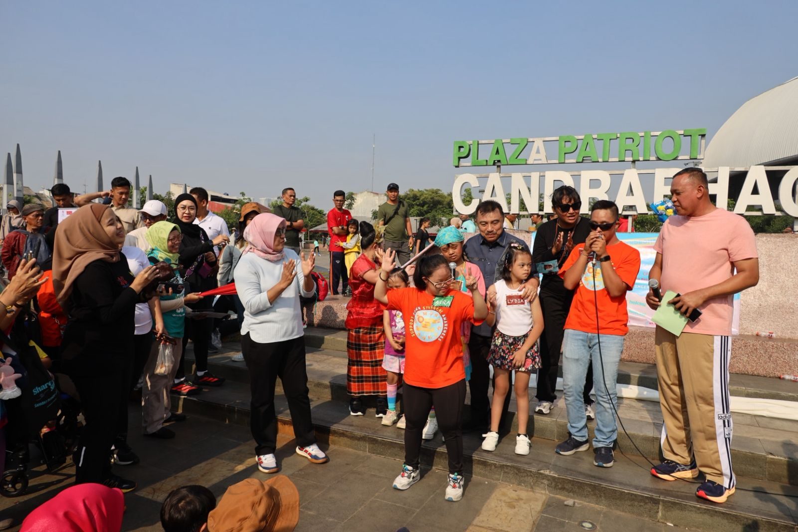 Wali dan Wakil Wali Kota Bekasi Nyanyi Bersama Anak Down Syndrome, Warnai CFD di Plaza Patriot Candrabhaga